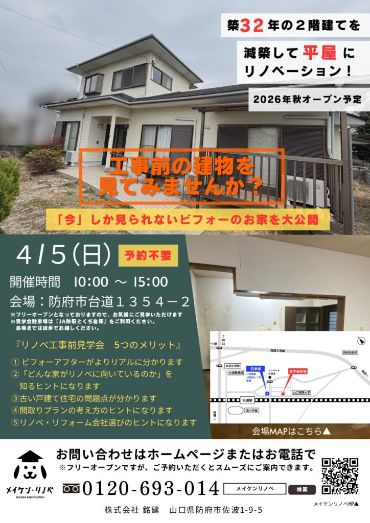 工事着手する前の建物を1日限定でOPENします♪この機会にぜひご見学ください。